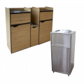 Модели категории представлены мусорным резервуаром в закрытом корпусе. В верхней части конструкции расположены отверстия для сбора посуды и мусора, закрытые крышкой с маятниковым механизмом. Таким образом содержимое внутренней емкости закрыто от глаз посетителей, не нарушая визуальный порядок.