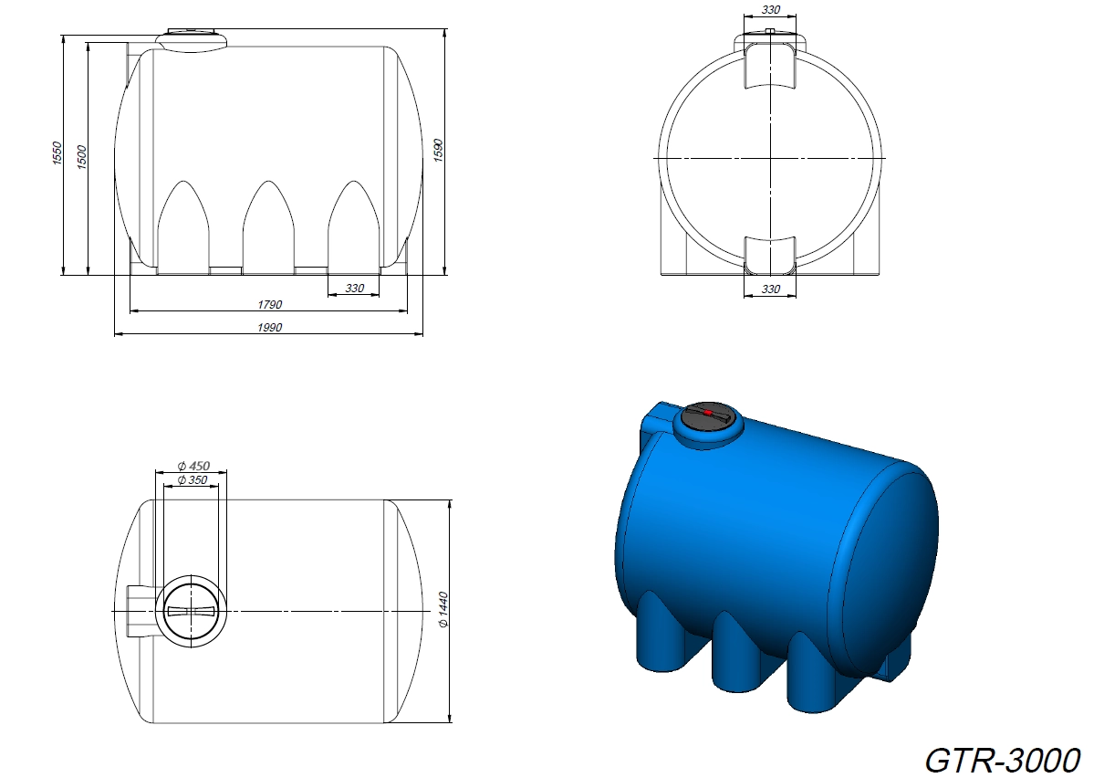- Емкость GTR 3000 КАС выполнена из полиэтилена, полученного методом ротационного формования. Материал устойчив к морозу, механическим повреждениям и ультрафиолетовому излучению: не изменяет вкусовых, физических и химических свойств жидкостей, хранящихся в емкости.