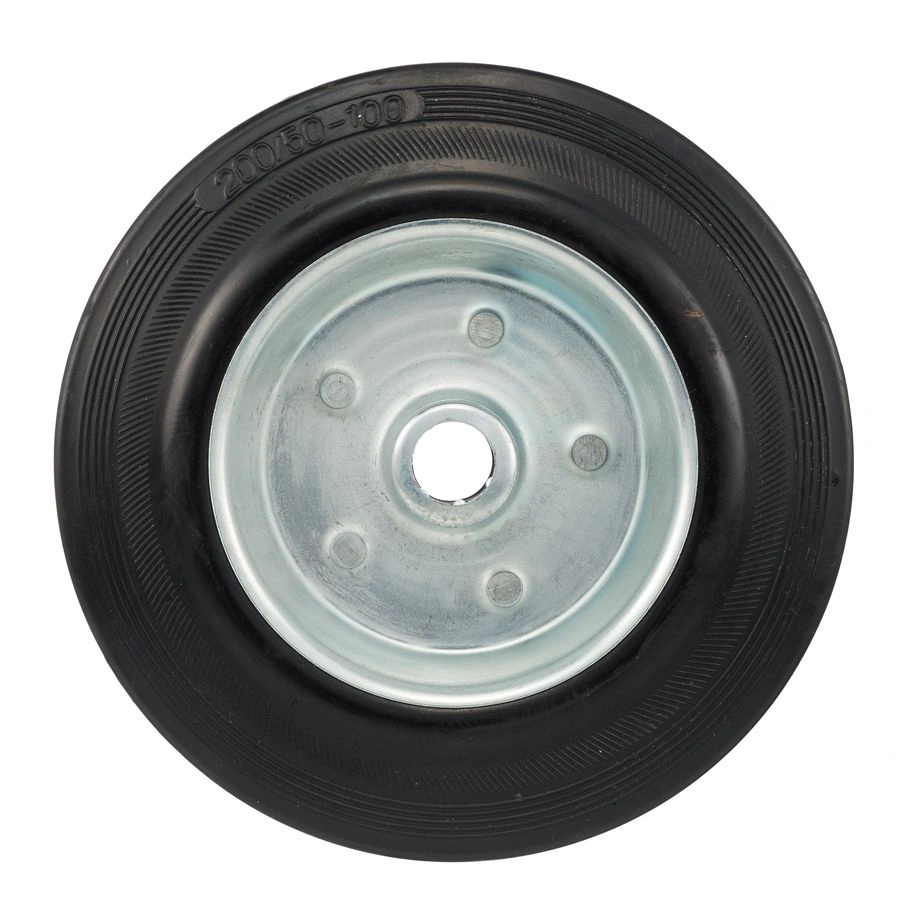 Колесо под ось 20мм. 4000-200, диаметр 200мм., грузоподъемность 185кг., резина, металл. Колесо из черной литой резины. Центр из стального оцинкованного обода из штампованной стали. В оси колес роликовый подшипник. Колеса из черной резины, центр из двух гальванизированных дисков из штампованной стали. Роликовый (игольчатый) подшипник расположен в углублении, выдавленном под прессом, и содержит цилиндрические ролики подшипника. Возможно применение на относительно грубых полах складов, заводов, производственных и строительных площадках. Данные колеса можно использовать на неровных поверхностях, во влажной окружающей среде и использовании вне помещения, не рекомендуется применять в среде с органическими растворителями, хлорированными веществами, гидрокарбонатами и минеральными маслами. Температура эксплуатации от -20 до +70С.