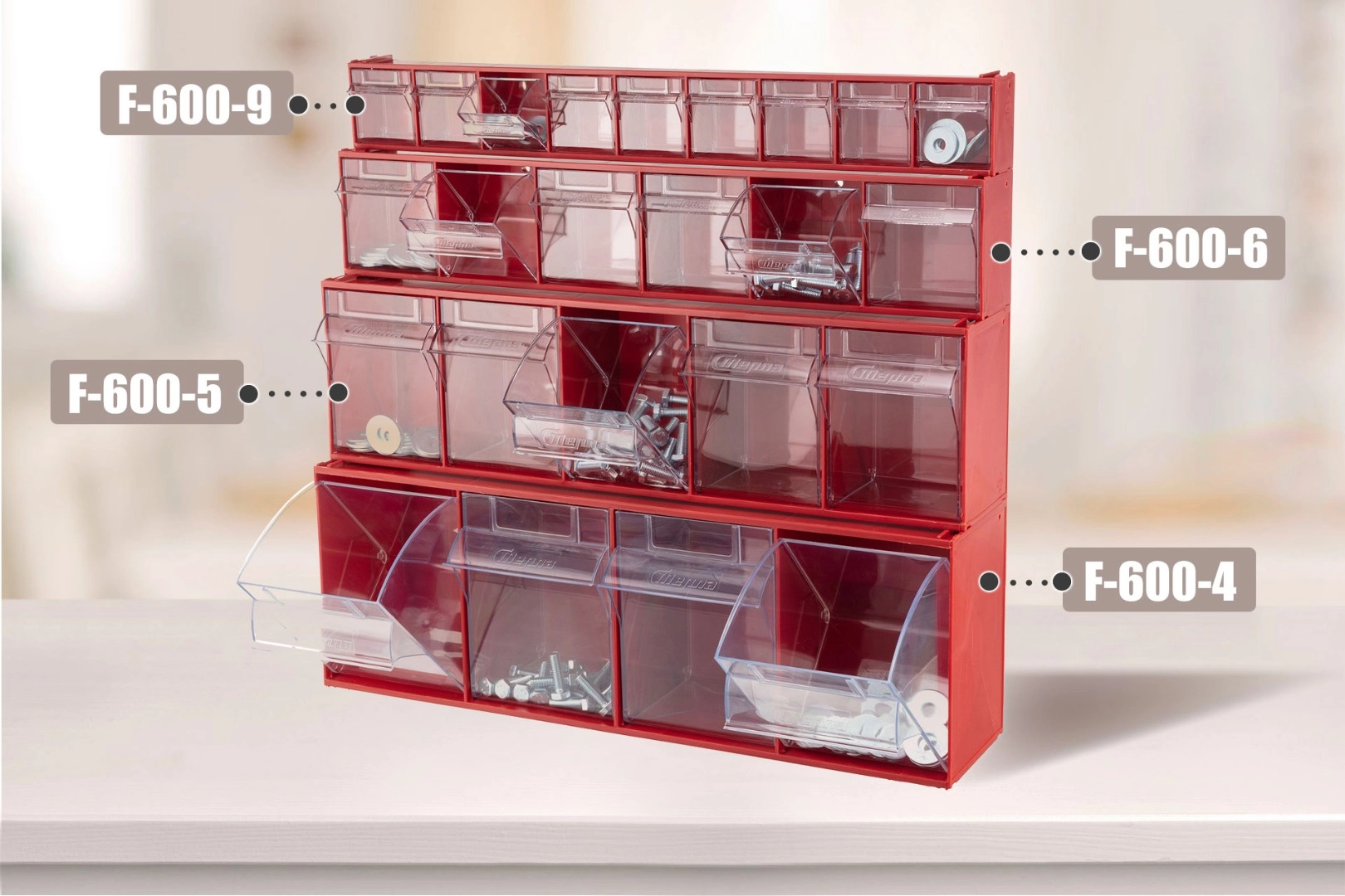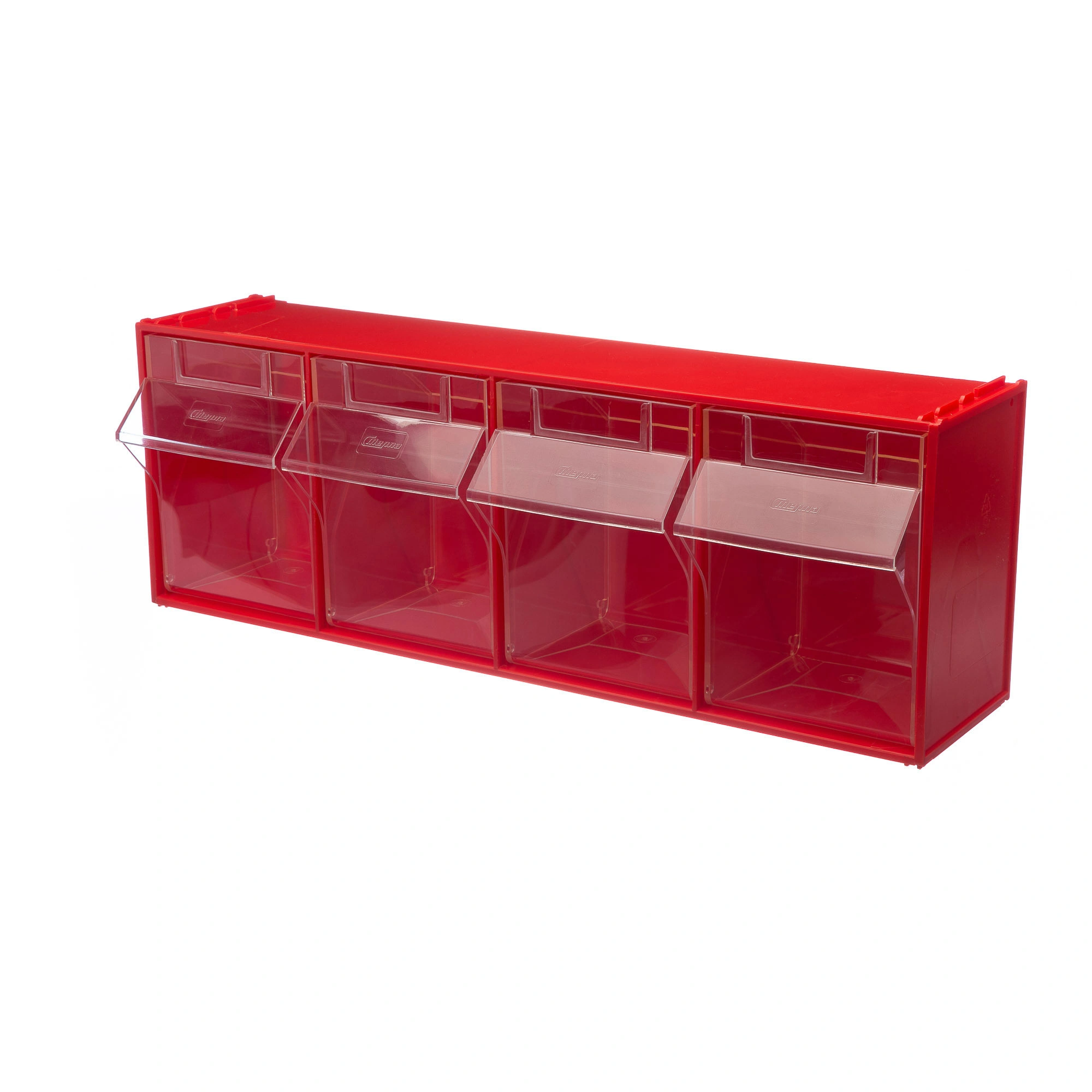 Короб откидной Стелла-техник F-600-4 (600х178х206мм.) 4 ячейки, красный, прозрачный служит для хранения мелкоштучных предметов. Данная система хранения не подвержена случайному опрокидыванию. Откидные стандартные ячейки обеспечивают быстрый доступ к необходимым предметам. В случае необходимости полного высыпания или наполнения внутренние ячейки легко извлекаются. Полезный внутренний размер каждой ячейки 138х127х134мм. Специальный пластик, из которого выполнен короб, выдерживает значительные нагрузки и обладает оптимальной эластичностью. На основе данных коробов можно сформировать многоярусную систему хранения вертикально, в том числе и с коробами меньших размеров, таких как F-600-9, F-600-6 и F-600-5 по принципу пирамиды. Использование в качестве дополнительного элемента специальных металлических рам, позволяет комплекту коробов нести большие нагрузки в напольном, настольном и настенном варианте. Короб данной модели легко можно прикрепить к стене или установить на специальные кронштейны (Артикул: Кронштейны-FOX-750). Обзорность содержимого сквозь прозрачные внутренние ячейки, наличие отсека для информационных бирок, легкое извлечение внутреннего короба для опустошения и наполнения, все это является неоспоримым преимуществом откидных коробов серии F. Температура эксплуатации от -10 до +70С.