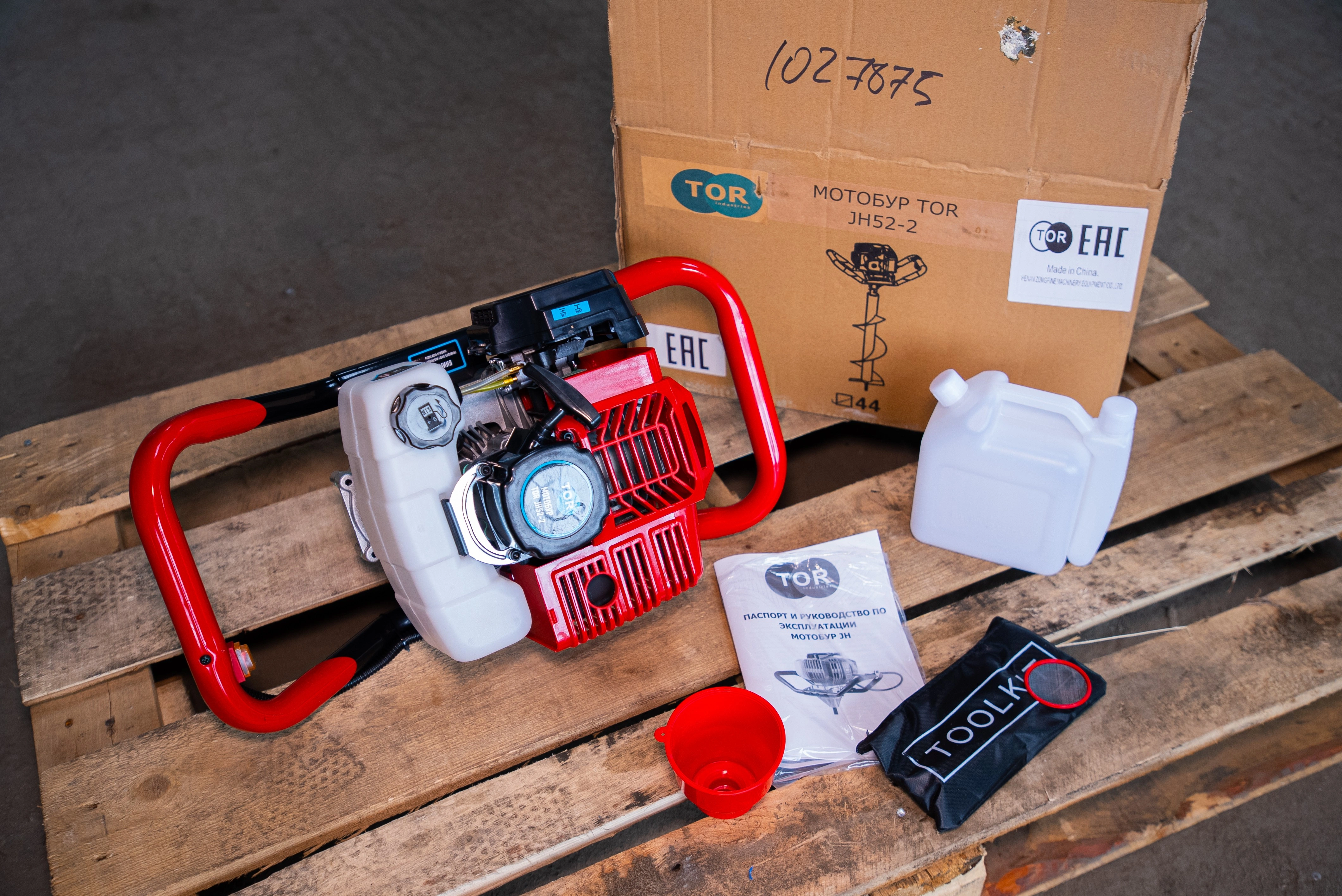 Мотобур TOR JH52-2 без шнека с объемом двигателя 52см3 и максимальной мощностью 1,8 кВт. - Возможно управление 1 или 2 операторами - Хорошо сбалансированный по весу - Антивибрационная система для комфортной работы - 2тактный бензиновый двигатель неприхотлив к условиям работы - Вместительный бензобак 1,3 л - Подходит для работы в теплое и холодное время года - Простой и безопасный в использовании Применяется при строительстве фундаментов, заборов, установке опор и столбов, бурении лунок и т.д. Может бурить отверстии в мёрзлом земле, льду, глине, торфе, песке и других видах грунта. Поставляется без шнека. Шнеки и удлинители в ассортименте: Шнек 100*800 мм для мотобуров JH 1027877 Шнек 150*800 мм для мотобуров JH 1027878 Шнек 200*800 мм для мотобуров JH 1027879 Шнек 250*800 мм для мотобуров JH 1027880 Шнек 300*800 мм для мотобуров JH 1027881 Шнек двухзаходный 200*800 мм для мотобуров JH 1027890 Шнек двухзаходный 150*800 мм для мотобуров JH 1027891 Удлинитель 500 мм для шнека мотобуровов JH 1027887 Удлинитель 900 мм для шнека мотобуровов JH 1027889