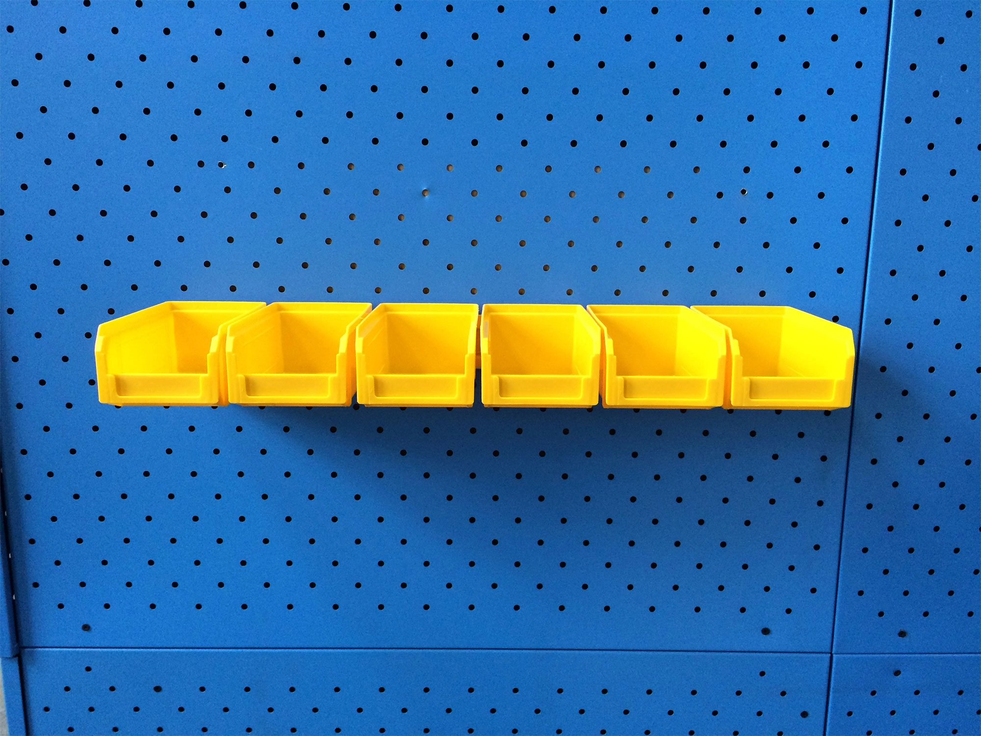 Органайзер настенный Стелла-техник V-1-650 с 6 ящиками серии V-1-синий в комплекте, является отличным решением для организации хранения метизов и различного рода мелкоштучных изделий. Органайзер в виде металлической планки вешается на стену, на экран верстака или над монтажным столом с помощью саморезов или винтов (крепеж для крепления к стене в комплект не входит и приобретается клиентом самостоятельно в зависимости от материала стены). Ящики типа V-1 легко снимаются с держателя для быстрого опустошения или наполнения содержимым, и с той же легкостью возвращаются на место. Яркие цвета ящиков помогают придать красок скучному рабочему пространству. Специальный карман на лицевой части позволяет размещать ярлык с описанием ассортимента хранящихся мелочей, для более быстрого поиска необходимого контейнера. Материал: ударопрочный полипропилен. Габаритные характеристики одного ящика: длина 172мм., ширина 102мм., высота 75мм. Объем 1л. Температура эксплуатации от -20 до +70С.