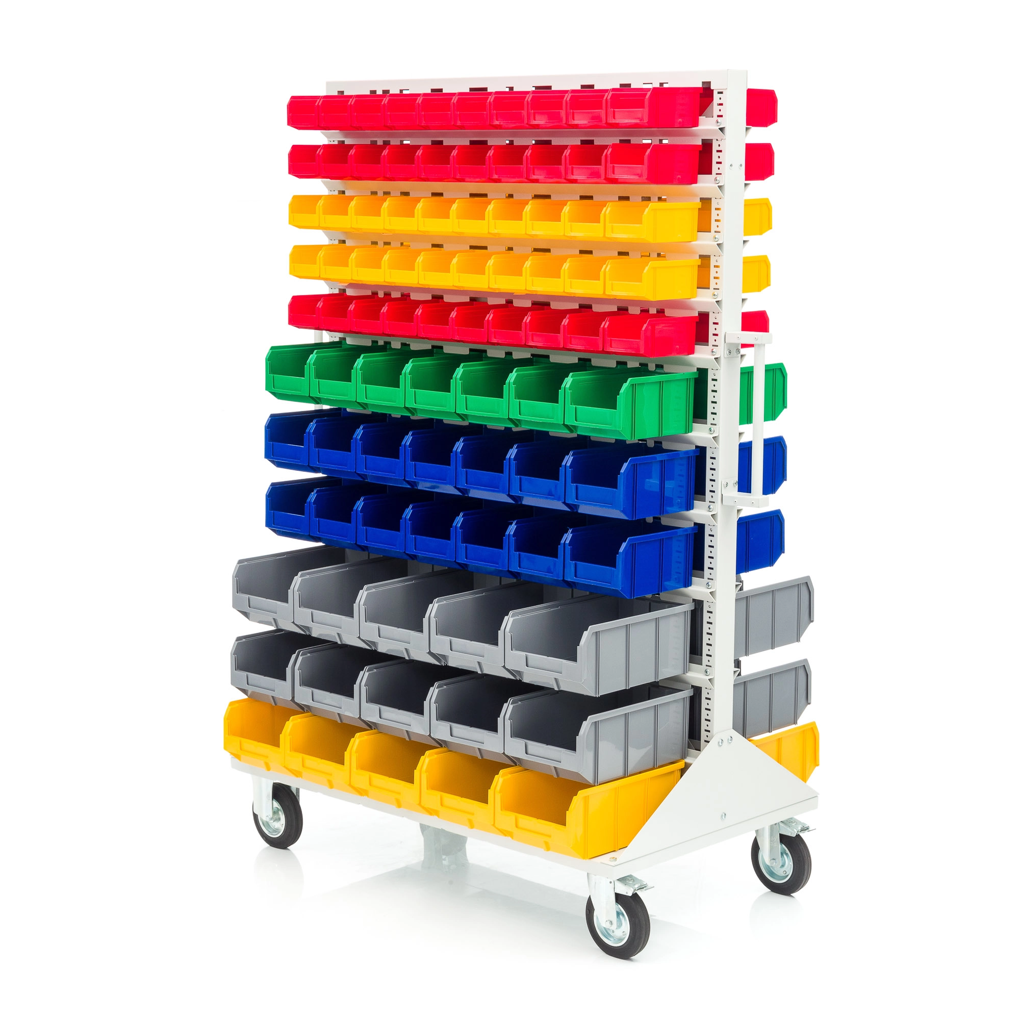 Платформа мобильная Стелла-техник V 700х735+2 ручки. Серия К служит основанием для мобильных, передвижных двусторонних стоек V 735х1515мм. и V 735х2020мм. под пластиковые ящики серии V-1, V-2 и V-3. Платформа мобильная Стелла-техник V 700х735 изготовлена из металла. Покрытие полимерное. Цвет серый. Платформа устанавливается на колеса, и стойка закрепляется на передвижной платформе. В нижней части платформы имеются места под точки крепления колес 80х60мм. В комплекте с платформой поставляются 2 ручки. Ручки служат для удобства управления конструкцией при движении. Колеса подбираются отдельно, в зависимости от грузоподъемности. В комплект поставки колеса не входят.