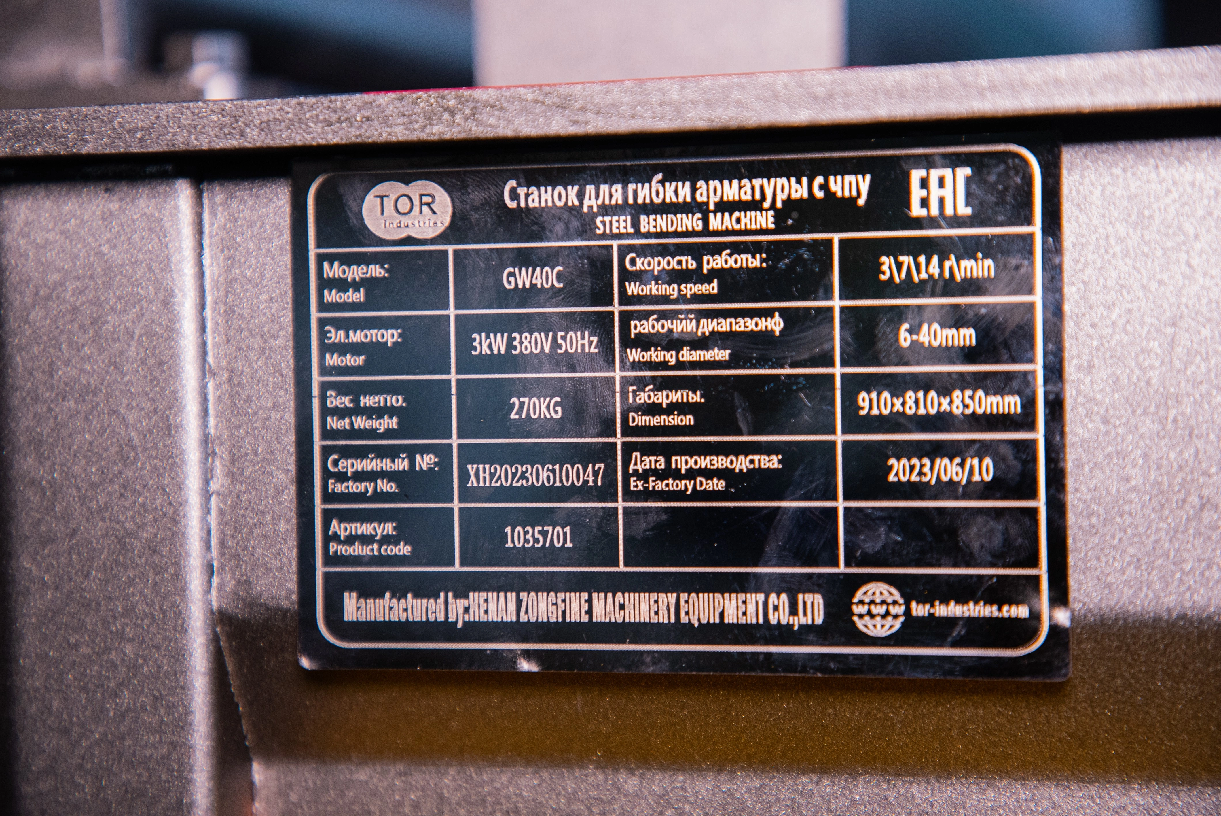 TOR GW40С - цифровая точность, автоматизация и надёжность в гибке арматуры для современного строительства. Станок для гибки арматуры TOR GW40С - профессиональное оборудование с цифровым управлением для высокоточной обработки арматуры диаметром до 40 мм. Мощность 3 кВт обеспечивает стабильную работу даже при интенсивной эксплуатации. Система ЧПУ позволяет программировать до 99 профилей гибки, автоматически регулировать параметры и сохранять настройки для повторяющихся операций. Интегрированный автоматический доводчик гарантирует точное завершение гибки без ручной корректировки. Прочная стальная конструкция и сенсорная панель управления делают станок незаменимым инструментом в условиях строительной площадки или цеха. ! Цифровое управление ЧПУ - программируемые профили гибки, автоматическое запоминание настроек, индивидуальные программы для каждого типа арматуры ! Максимальный диаметр арматуры (ГОСТ 5781-82 и 10884-94): А1 - 40 мм, А3 - 32 мм, HRB400 до 28 мм ! Встроенный таймер циклов - автоматическое отображение количества выполненных гибок ! Предустановка углов - 5–180° с точностью ±0,5° ! Сенсорная панель управления - интуитивные настройки, подсветка, многоязычный интерфейс ! В комплекте набор гибочной оснастки для круглой арматуры диаметром 40/32 мм Где используется? - На строительных объектах для гибки арматуры в монолитном бетоне - В железобетонных цехах и на заводах ЖБИ - При возведении мостов, дорог и крупных промышленных объектов - Для производства каркасов и армирующих конструкций с высокой точностью - В условиях, где требуется серийная гибка арматуры диаметром 40/32 мм Основные преимущества: - ЧПУ-управление - полная автоматизация процесса, сокращение брака до 95% по сравнению с ручными станками - Мощность 3 кВт - надёжная работа с арматурой диаметром до 40 мм - Программируемый доводчик - автоматическое завершение гибки с заданным углом без ручной корректировки - Система сохранения профилей - до 99 предустановленных программ для быстрого переключения между типами работ - Высокая производительность - до 7–9 гибок в минуту в зависимости от диаметра арматуры - Прочная стальная рама - выдерживает интенсивную эксплуатацию, не деформируется - Сенсорная панель управления - интуитивный интерфейс, минимальное обучение оператора - Надёжная система торможения - исключает перекручивание и повреждение заготовки - Компактность - удобная установка даже в условиях ограниченного пространства