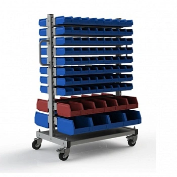 Стеллаж разработан специально для систематизации, хранения различных комплектующих, деталей, запчастей, крепежных и строительных материалов: болты, гайки, сверла, подшипники, метизы, фитинги, сантехника, зажимы, заклепки и т.д.