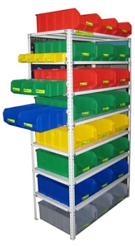 Полочный стеллаж с ударопрочными ящиками типа V подойдет для хранения инструмента, деталей, запчастей или различных мелочей. Стеллаж идет в комплекте с ударостойкими пластиковыми ящиками серии "V" из полипропилена. Цвета ящиков можно указать в заказе. Дополнительно можно установить 3 ящика на пол (в стоимость не входят и продаются отдельно).