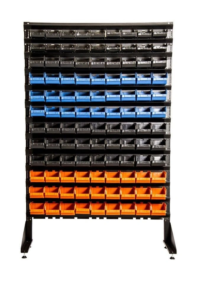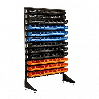 Стеллаж с пластиковыми ящиками 1501-2/10/0 предназначен для размещения в контейнерах мелкогабаритных комплектующих и крепежа. Идеально подходят в качестве витрин в магазинах, или для хранения деталей в мастерских, на складах, на производстве и т.д.