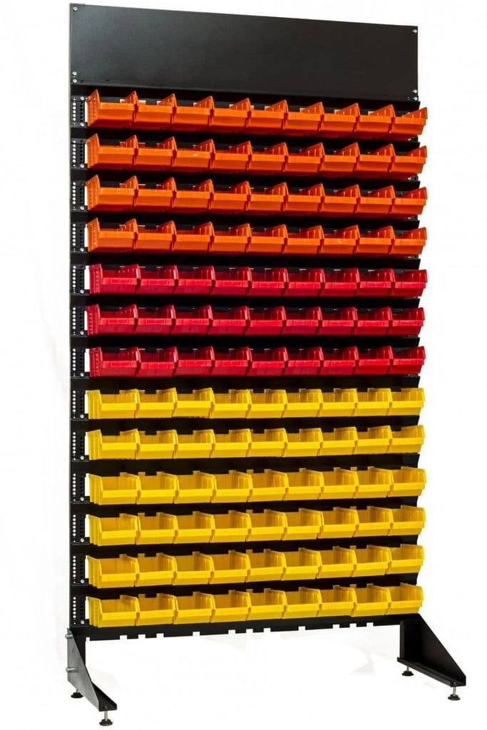 Стенд разработан специально для систематизации, хранения различных комплектующих, деталей, запчастей, крепежных и строительных материалов: болты, гайки, сверла, подшипники, метизы, фитинги, сантехника, зажимы, заклепки и т.д.