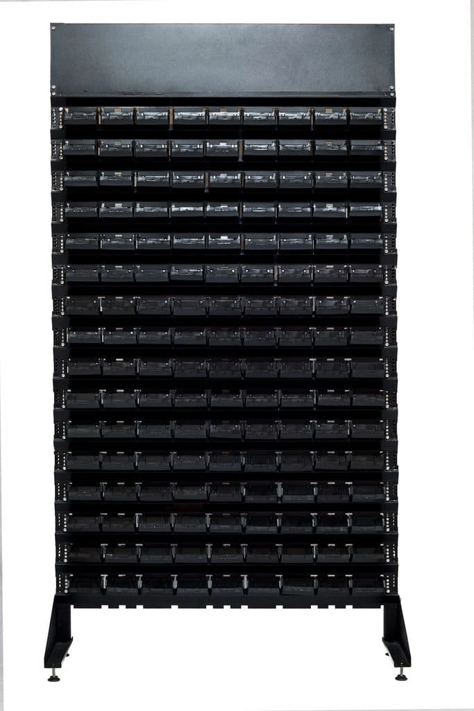 Стенд разработан специально для систематизации, хранения различных комплектующих, деталей, запчастей, крепежных и строительных материалов: болты, гайки, сверла, подшипники, метизы, фитинги, сантехника, зажимы, заклепки и т.д.