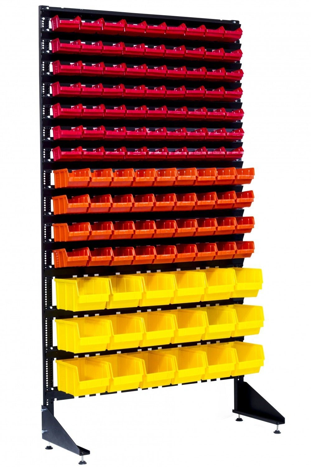 Конструкция данного оборудования, позволяет комбинировать ящиками разных размеров. Перфорация на стойке, позволяет менять шаг в зависимости от размера лотка. Траверсы крепятся на стойку болтами М6, (болты в комплекте).